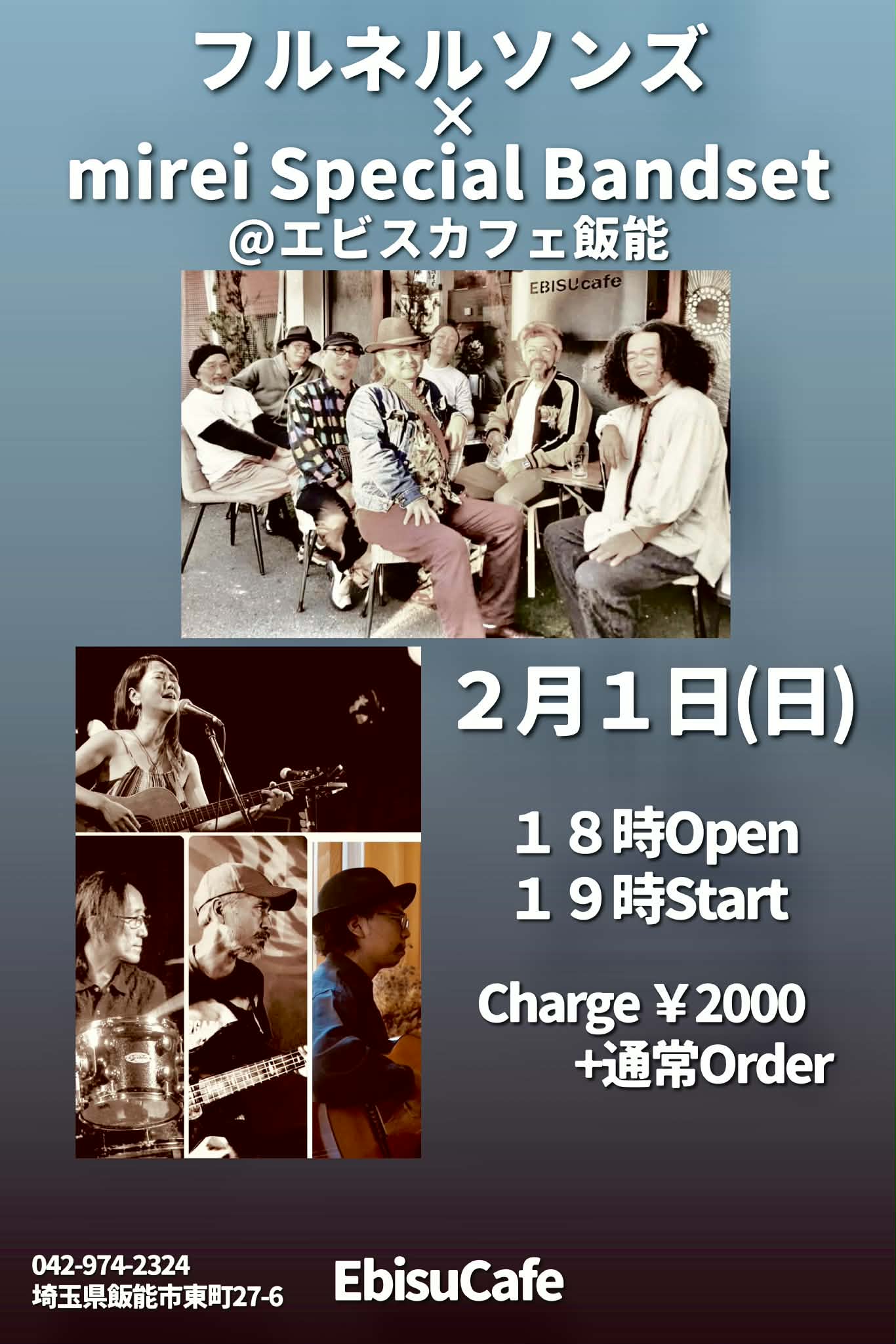2/1(日) エビスカフェ飯能2026年1月19日開催日: 2026年2月1日カテゴリー: 呼んでいただいたイベント 飯能にある素敵プレイス“エビスカフェ”に2度目の出場です🤼 ご都合良い方、お近くの方は、遊びにいらしてくださいませ‼️ 出演: ⭐︎mirei special bandset ⭐︎フルネルソンズ Open 18:00 Start 19:00 Charge ¥2,000(別途オーダー) <エビスカフェ飯能> ・住所: 埼玉県飯能市東町27−6 地図 ・TEL: 電話 ・URL: https://ebiscafe.amebaownd.com/ こちらのフォームでもご予約受付可能です お名前 メールアドレス お電話番号 ご予約人数 何か一言あれば(任意) ライブ予定等の新着情報をメールでお届けします Please leave this field empty.